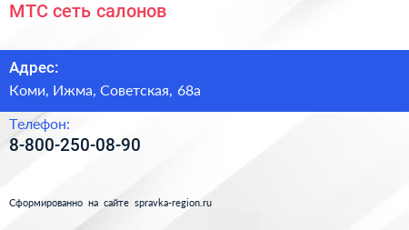 МТС, сеть салонов по адресу Коми, Ижма, Советская, 68а в дальнейшем Организация, размещена в следующих категориях: