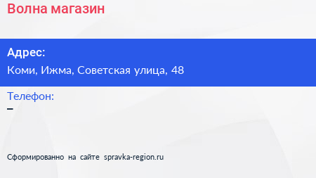 Волна, магазин по адресу Коми, Ижма, Советская улица, 48 в дальнейшем Организация, размещена в следующих категориях: