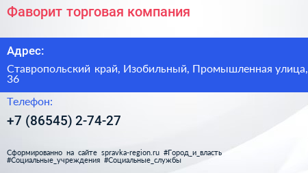 Фаворит, торговая компания по адресу Ставропольский край, Изобильный, Промышленная улица, 36 в дальнейшем Организация, размещена в следующих категориях: