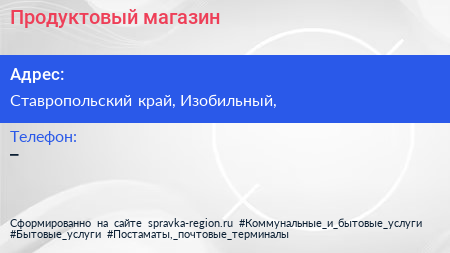 Продуктовый магазин по адресу Ставропольский край, Изобильный, в дальнейшем Организация, размещена в следующих категориях: