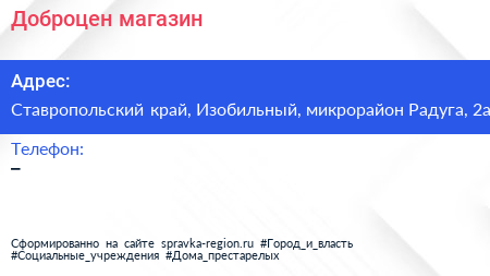 Доброцен, магазин по адресу Ставропольский край, Изобильный, микрорайон Радуга, 2а в дальнейшем Организация, размещена в следующих категориях: