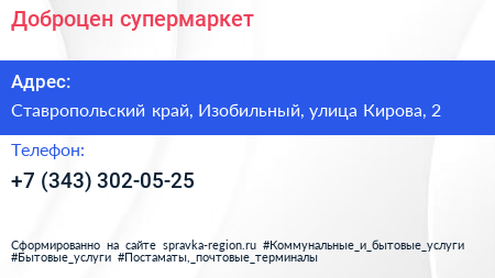 Доброцен, супермаркет по адресу Ставропольский край, Изобильный, улица Кирова, 2 в дальнейшем Организация, размещена в следующих категориях: