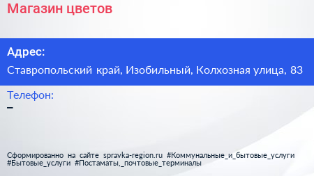 Магазин цветов по адресу Ставропольский край, Изобильный, Колхозная улица, 83 в дальнейшем Организация, размещена в следующих категориях: