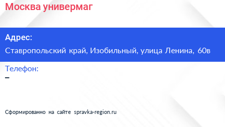 Москва, универмаг по адресу Ставропольский край, Изобильный, улица Ленина, 60в в дальнейшем Организация, размещена в следующих категориях: