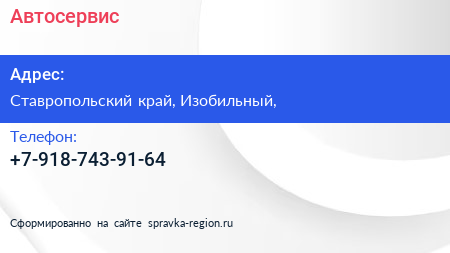 Автосервис по адресу Ставропольский край, Изобильный, в дальнейшем Организация, размещена в следующих категориях: