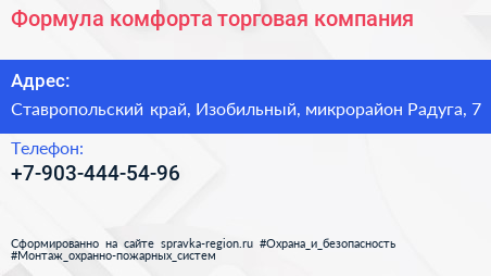 Формула комфорта, торговая компания по адресу Ставропольский край, Изобильный, микрорайон Радуга, 7 в дальнейшем Организация, размещена в следующих категориях: