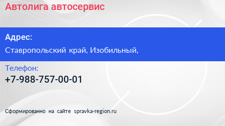 Автолига, автосервис по адресу Ставропольский край, Изобильный, в дальнейшем Организация, размещена в следующих категориях: