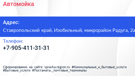 Автомойка по адресу Ставропольский край, Изобильный, микрорайон Радуга, 2а в дальнейшем Организация, размещена в следующих категориях:
