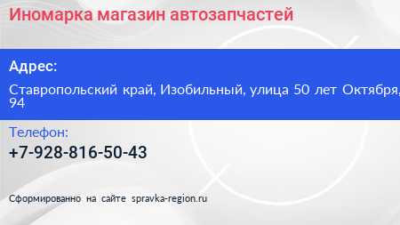 Иномарка, магазин автозапчастей по адресу Ставропольский край, Изобильный, улица 50 лет Октября, 94 в дальнейшем Организация, размещена в следующих категориях: