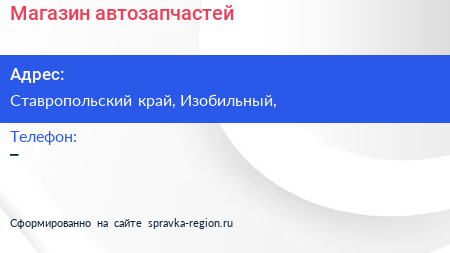 Магазин автозапчастей по адресу Ставропольский край, Изобильный, в дальнейшем Организация, размещена в следующих категориях: