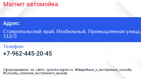 Магнит, автомойка по адресу Ставропольский край, Изобильный, Промышленная улица, 112/3 в дальнейшем Организация, размещена в следующих категориях:
