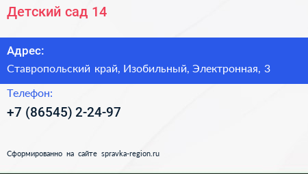 Детский сад №14 по адресу Ставропольский край, Изобильный, Электронная, 3 в дальнейшем Организация, размещена в следующих категориях: