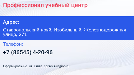 Профессионал, учебный центр по адресу Ставропольский край, Изобильный, Железнодорожная улица, 271 в дальнейшем Организация, размещена в следующих категориях: