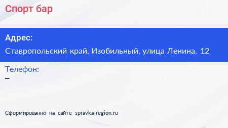 Спорт-бар по адресу Ставропольский край, Изобильный, улица Ленина, 12 в дальнейшем Организация, размещена в следующих категориях: