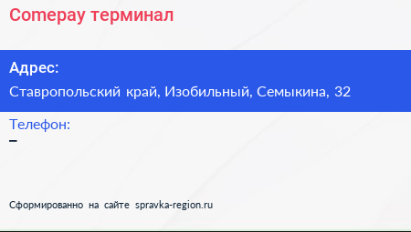 Comepay, терминал по адресу Ставропольский край, Изобильный, Семыкина, 32 в дальнейшем Организация, размещена в следующих категориях: