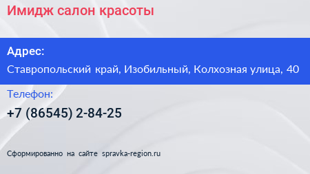 Имидж, салон красоты по адресу Ставропольский край, Изобильный, Колхозная улица, 40 в дальнейшем Организация, размещена в следующих категориях: