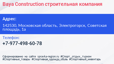 Baya Construction, строительная компания по адресу 142530, Московская область, Электрогорск, Советская площадь, 1а в дальнейшем Организация, размещена в следующих категориях: