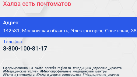 Халва, сеть почтоматов по адресу 142531, Московская область, Электрогорск, Советская, 38 в дальнейшем Организация, размещена в следующих категориях: