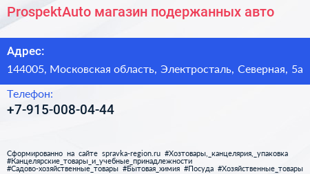ProspektAuto, магазин подержанных авто по адресу 144005, Московская область, Электросталь, Северная, 5а в дальнейшем Организация, размещена в следующих категориях: