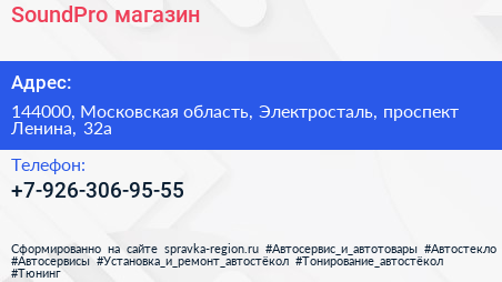 SoundPro, магазин по адресу 144000, Московская область, Электросталь, проспект Ленина, 32а в дальнейшем Организация, размещена в следующих категориях:
