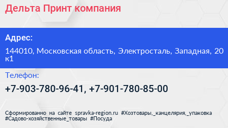 Дельта-Принт, компания по адресу 144010, Московская область, Электросталь, Западная, 20 к1 в дальнейшем Организация, размещена в следующих категориях: