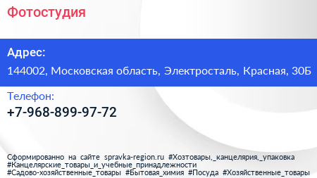 Фотостудия по адресу 144002, Московская область, Электросталь, Красная, 30Б в дальнейшем Организация, размещена в следующих категориях: