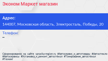 Эконом-Маркет, магазин по адресу 144007, Московская область, Электросталь, Победы, 20 в дальнейшем Организация, размещена в следующих категориях: