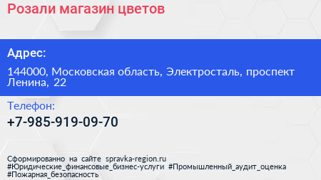Розали, магазин цветов по адресу 144000, Московская область, Электросталь, проспект Ленина, 22 в дальнейшем Организация, размещена в следующих категориях: