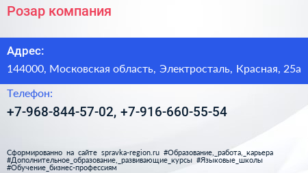 Розар, компания по адресу 144000, Московская область, Электросталь, Красная, 25а в дальнейшем Организация, размещена в следующих категориях: