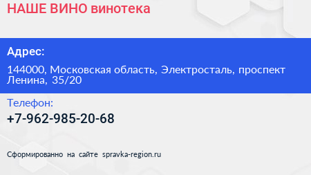 #НАШЕ ВИНО, винотека по адресу 144000, Московская область, Электросталь, проспект Ленина, 35/20 в дальнейшем Организация, размещена в следующих категориях: