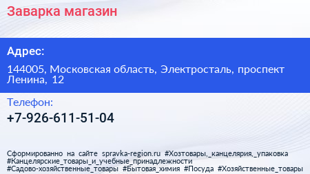 Заварка, магазин по адресу 144005, Московская область, Электросталь, проспект Ленина, 12 в дальнейшем Организация, размещена в следующих категориях: