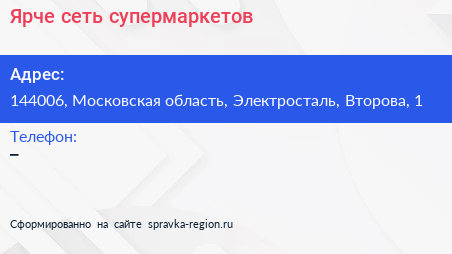 Ярче!, сеть супермаркетов по адресу 144006, Московская область, Электросталь, Второва, 1 в дальнейшем Организация, размещена в следующих категориях:
