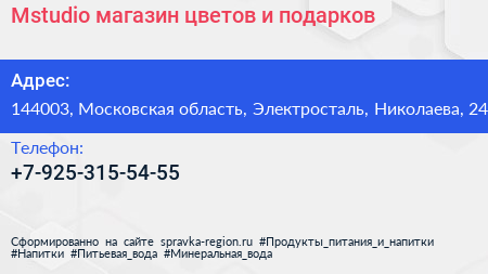 Mstudio, магазин цветов и подарков по адресу 144003, Московская область, Электросталь, Николаева, 24 в дальнейшем Организация, размещена в следующих категориях: