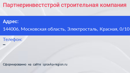 Партнеринвестстрой, строительная компания по адресу 144006, Московская область, Электросталь, Красная, 0/10 в дальнейшем Организация, размещена в следующих категориях:
