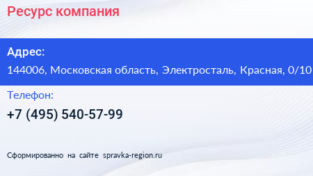 Ресурс, компания по адресу 144006, Московская область, Электросталь, Красная, 0/10 в дальнейшем Организация, размещена в следующих категориях: