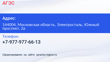 АГЗС по адресу 144004, Московская область, Электросталь, Южный проспект, 2а в дальнейшем Организация, размещена в следующих категориях:
