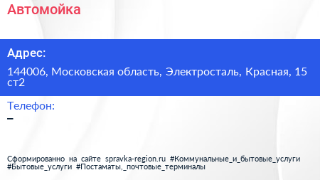 Автомойка по адресу 144006, Московская область, Электросталь, Красная, 15 ст2 в дальнейшем Организация, размещена в следующих категориях: