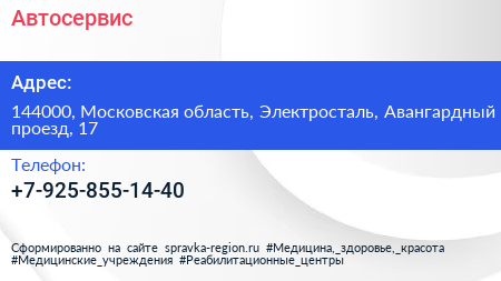 Автосервис по адресу 144000, Московская область, Электросталь, Авангардный проезд, 17 в дальнейшем Организация, размещена в следующих категориях: