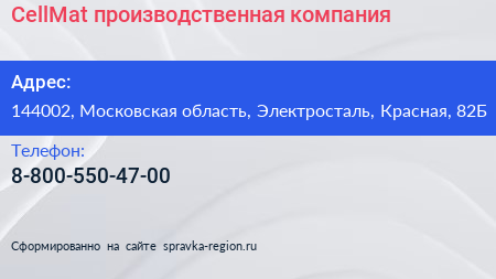 CellMat, производственная компания по адресу 144002, Московская область, Электросталь, Красная, 82Б в дальнейшем Организация, размещена в следующих категориях: