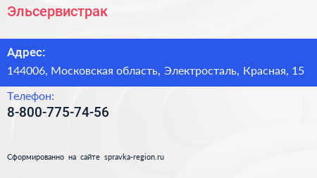Эльсервистрак по адресу 144006, Московская область, Электросталь, Красная, 15 в дальнейшем Организация, размещена в следующих категориях: