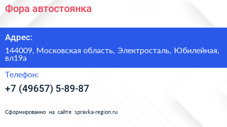 Фора, автостоянка по адресу 144009, Московская область, Электросталь, Юбилейная, вл19а в дальнейшем Организация, размещена в следующих категориях:
