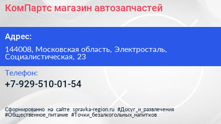 КомПартс, магазин автозапчастей по адресу 144008, Московская область, Электросталь, Социалистическая, 23 в дальнейшем Организация, размещена в следующих категориях:
