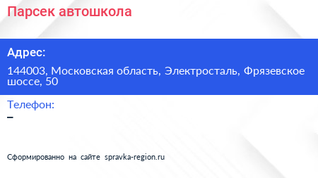Парсек, автошкола по адресу 144003, Московская область, Электросталь, Фрязевское шоссе, 50 в дальнейшем Организация, размещена в следующих категориях: