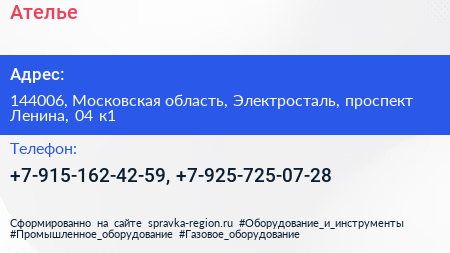 Ателье по адресу 144006, Московская область, Электросталь, проспект Ленина, 04 к1 в дальнейшем Организация, размещена в следующих категориях: