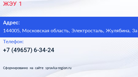 ЖЭУ-1 по адресу 144005, Московская область, Электросталь, Жулябина, 3а в дальнейшем Организация, размещена в следующих категориях: