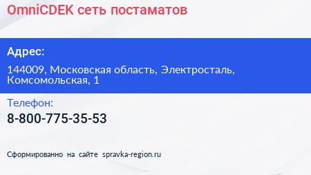 OmniCDEK, сеть постаматов по адресу 144009, Московская область, Электросталь, Комсомольская, 1 в дальнейшем Организация, размещена в следующих категориях: