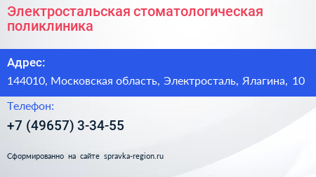 Электростальская стоматологическая поликлиника по адресу 144010, Московская область, Электросталь, Ялагина, 10 в дальнейшем Организация, размещена в следующих категориях: