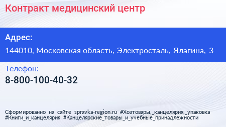 Контракт, медицинский центр по адресу 144010, Московская область, Электросталь, Ялагина, 3 в дальнейшем Организация, размещена в следующих категориях: