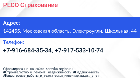 РЕСО-Страхование по адресу 142455, Московская область, Электроугли, Школьная, 44 в дальнейшем Организация, размещена в следующих категориях: