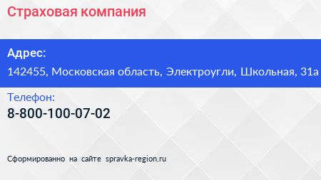 Страховая компания по адресу 142455, Московская область, Электроугли, Школьная, 31а в дальнейшем Организация, размещена в следующих категориях: